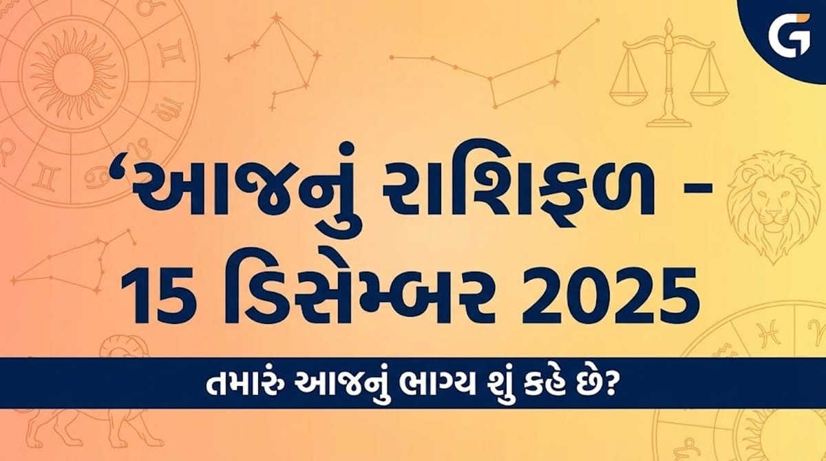 આજનું રાશિફળ 15 ડિસેમ્બર 2025 અનુસાર સોમવારનો દિવસ અનેક રાશિઓ માટે નવી તક અને મહત્વના નિર્ણયો લઈને આવ્યો છે. નોકરી, ધંધો, પૈસા, પ્રેમ અને સ્વાસ્થ્ય અંગે તમામ 12 રાશિઓનું વિગતવાર રાશિફળ વાંચો.
