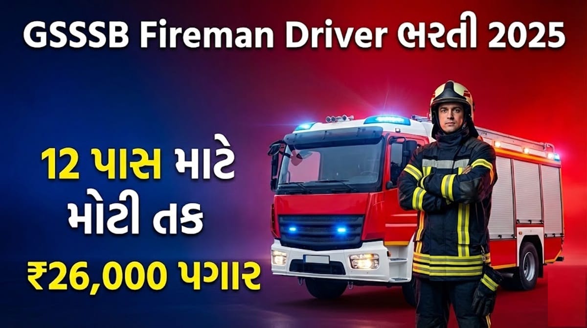 GSSSB Fireman Driver Bharti 2025 | 138 જગ્યા માટે ભરતી જાહેર, 9 ડિસેમ્બરથી અરજી શરૂ