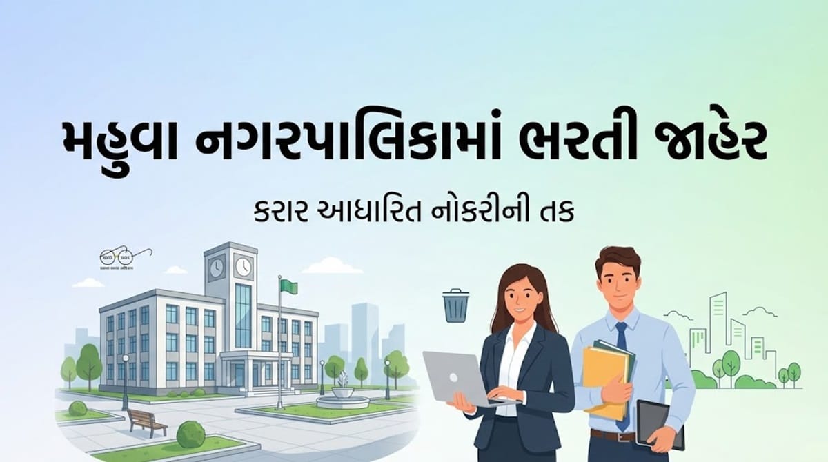 Mahuva Nagarpalika Recruitment 2025 અંતર્ગત મહુવા નગરપાલિકામાં સ્વચ્છ ભારત મિશન-2.0 હેઠળ કરાર આધારિત ભરતી જાહેર કરવામાં આવી છે. લાયક ઉમેદવારો માટે અરજી કરવાની મહત્વપૂર્ણ માહિતી અહીં વાંચો.